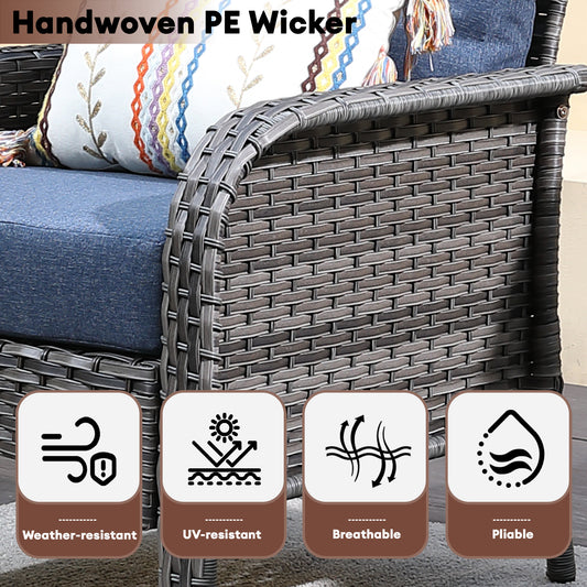 Allwex Outdoor Patio Furniture 4-Piece Garden Furniture Set Clearance Sale, Fully Handwoven Wicker Chairs Soft Touch Patio Sofa with Ottomans, All-Weather Outdoor Furniture Set(Black)