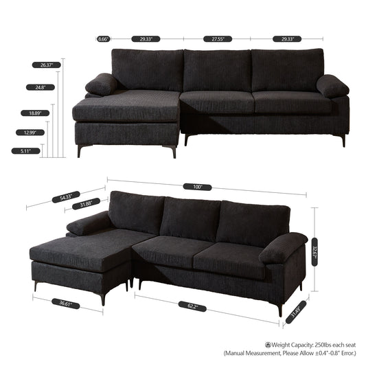 Allwex 100" Three-Seat Sofa, Nordic Style Living Room Sofa, Pit Stripe Fabric, Cat Scratch Proof and Easy to Install Sofa for Different House Types
