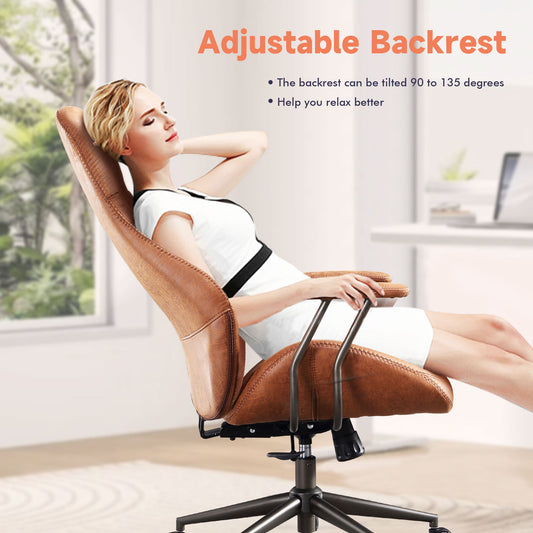 Allwex Ergonomic Office Chair, High Back Adjustable Desk Chair, Long Sitting Comfortable Gaming Chair for Executive or Home Office (Brown-Black)